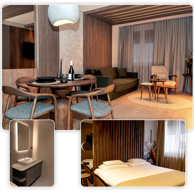 Smješten u srcu Jahorine, naš hotel pruža savršen spoj modernog dizajna, topline i udobnosti. Bilo da putujete poslovno ili u potrazi za opuštajućim odmorom, nudimo ambijent u kojem se možete osjećati kao kod kuće. Prepustite se prijatnoj atmosferi, pažljivo odabranim sadržajima i usluzi koja se prilagođava vašim potrebama. Vaše zadovoljstvo je naša misija – od prvog trenutka kada zakoračite u naš prostor.