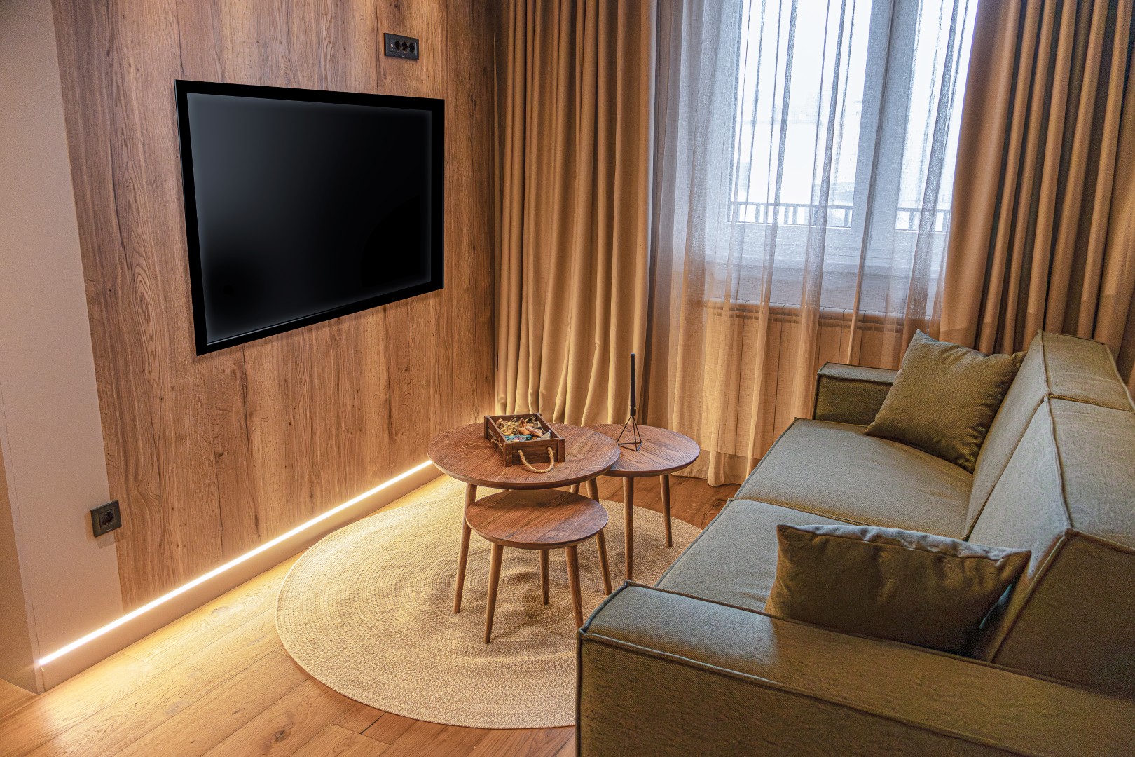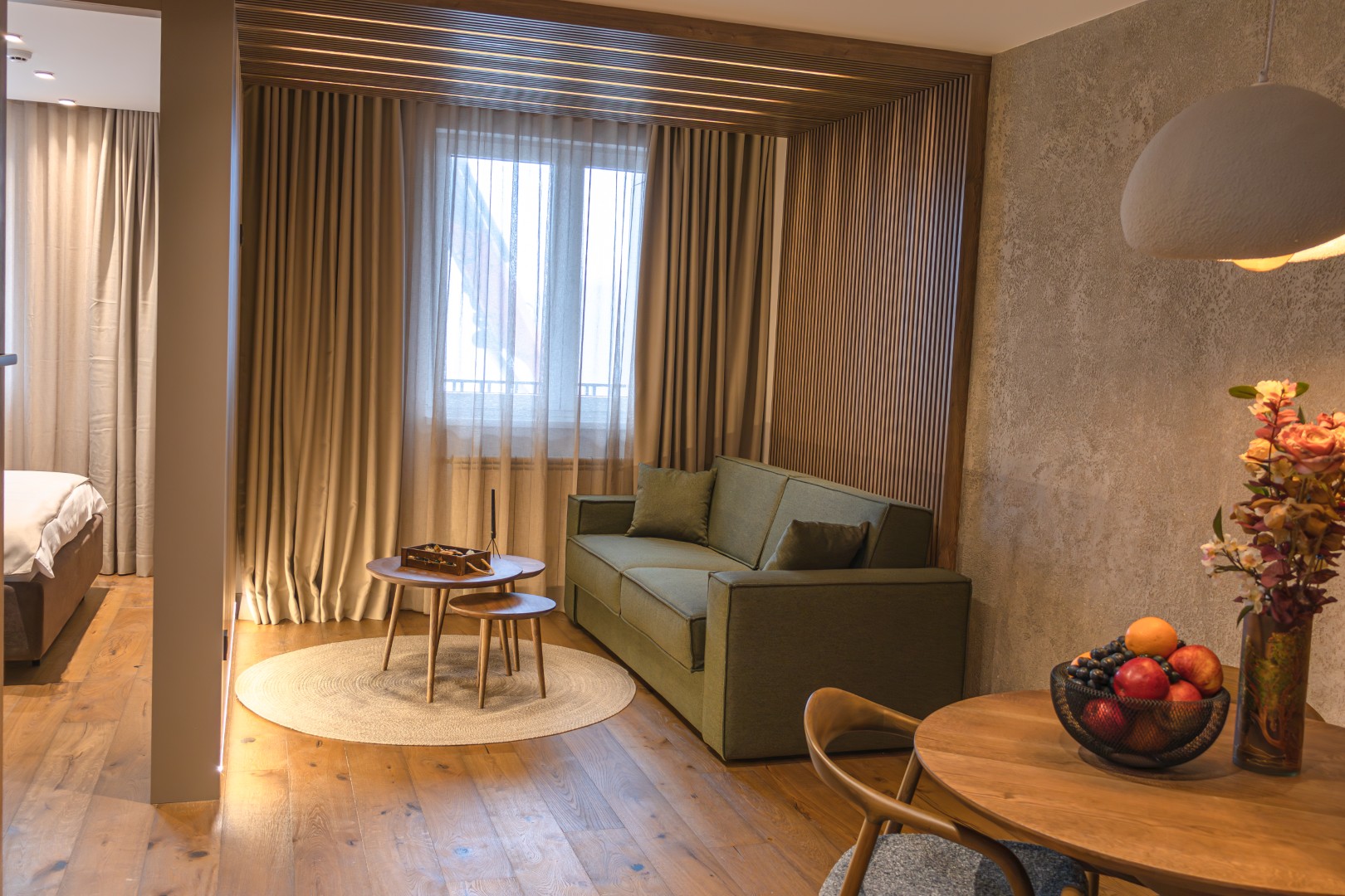 Udoban apartman idealan za porodice ili parove, sa francuskim krevetom i praktičnim klik–klak ležajem na razvlačenje. Maksimalan kapacitet: 4 osobe.
